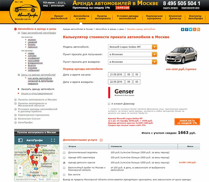В АрендаАвто-пть предлагается прокат автомобиля недорого.«Рено Логан» на сутки обошелся нам в 1 520 рублей (без учета скидки для клиента Genser), а это очень дешево для авто напрокат в Пыть-яхе.